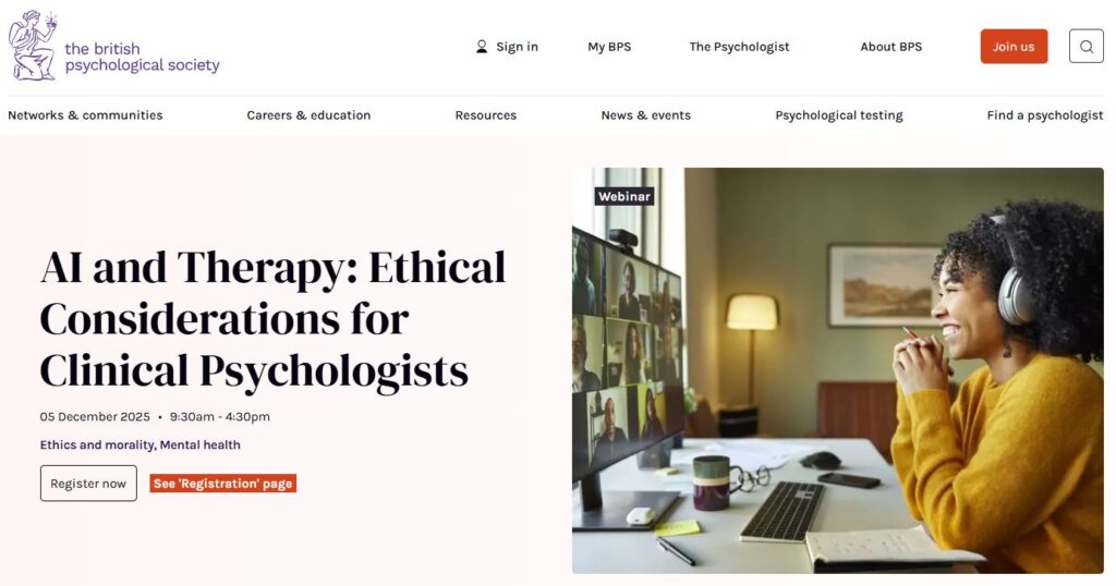 AI and Therapy: Ethical considerations for clinical psychologists; The British Psychological Society Webinar; December 5, 2025.