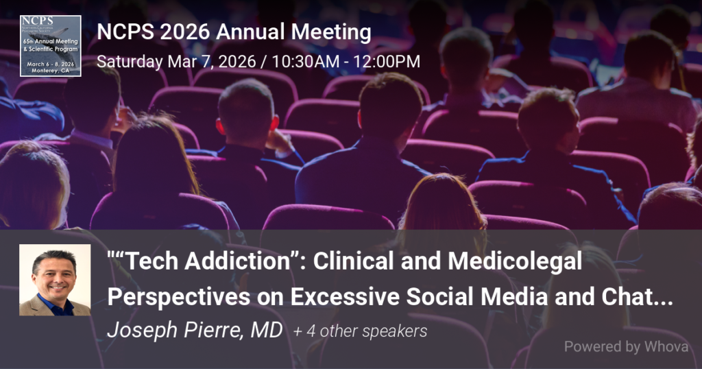 Northern California Psychiatric Society Annual Meeting; Monterey, CA; March 7, 2026.